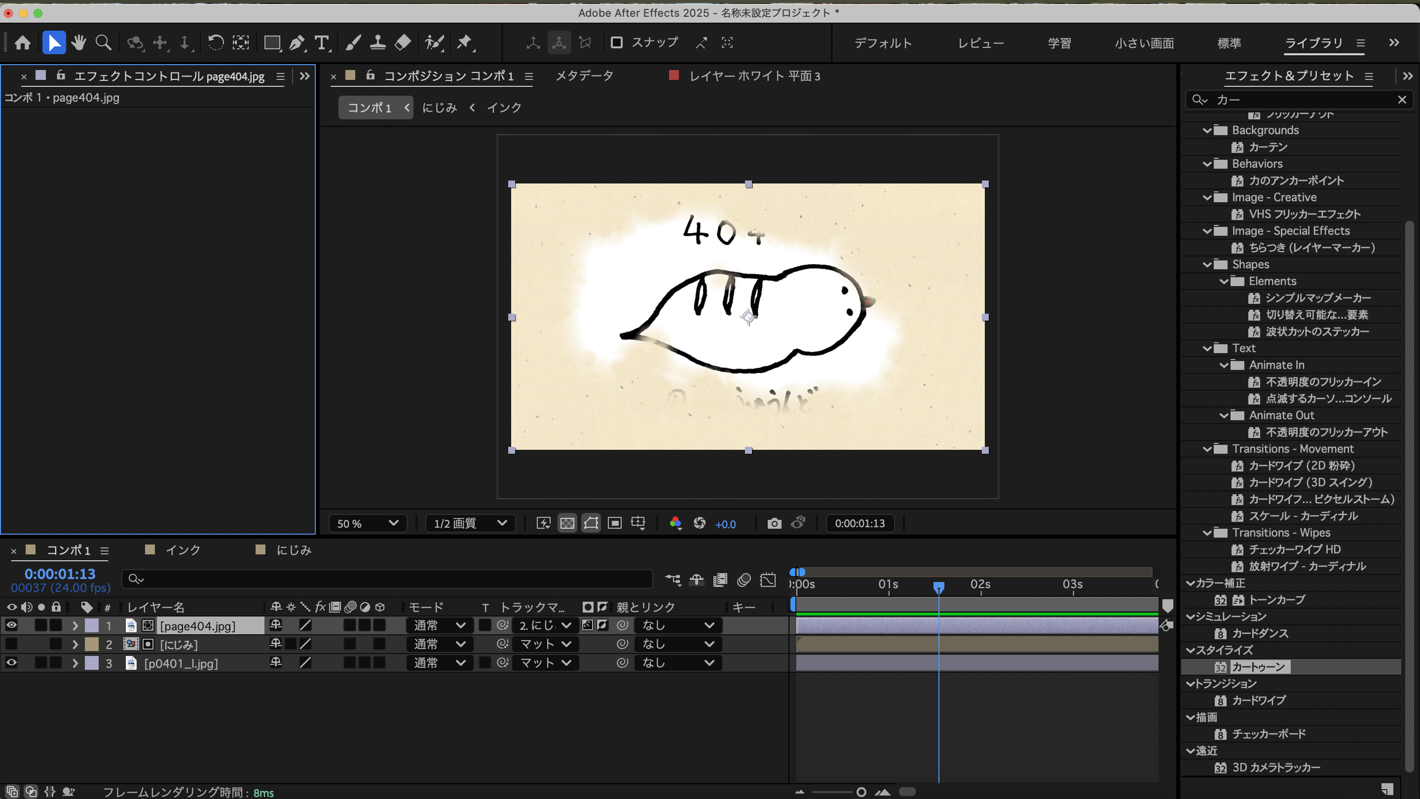 順番は上から「浮き出させたい画像」「インク滲み動画」「紙のテクスチャー」って感じですね